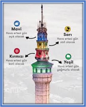 İstanbullular akşam saatlerinde günün hava durumunu belirlemek için Beyazıt kulesinin ışıklarını takip ederlerdi. Çünkü, hava durumu yukarıdaki resimden de görüleceği gibi farkı renklerle ifade edilirdi.